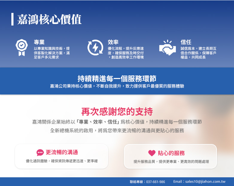 ——嘉鴻集團旗下四家關係企業已完成總機系統整合,並全面啟用全新通訊平台!