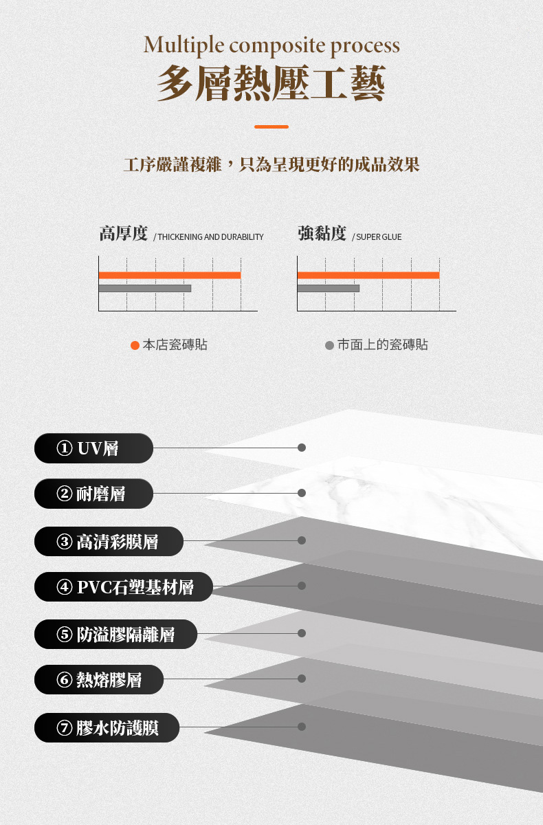 | 表面處理 | 高清 UV 印刷,仿大理石紋理 |