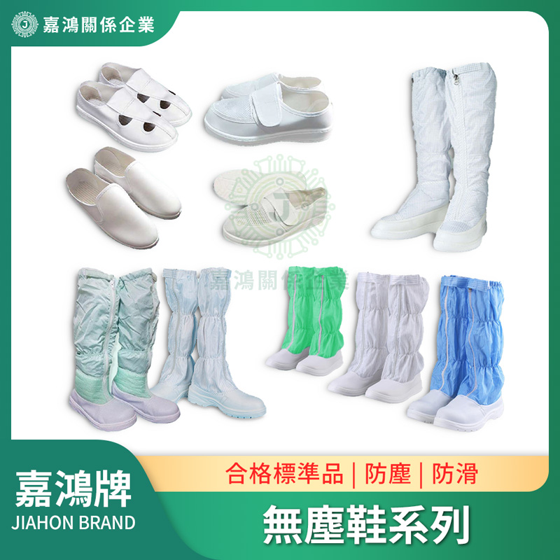 選無塵鞋,按優先順序問三個問題:① 作業中有重物掉落、撞擊風險?→ 需要鋼頭款。② 作業姿勢需要腳踝支撐或防塵包覆?→ 選長筒。③ 其餘條件下優先考慮透氣性與穿著舒適度 → 選短筒四孔款。全系列均具備防靜電設計,ESD 防護能力相當。