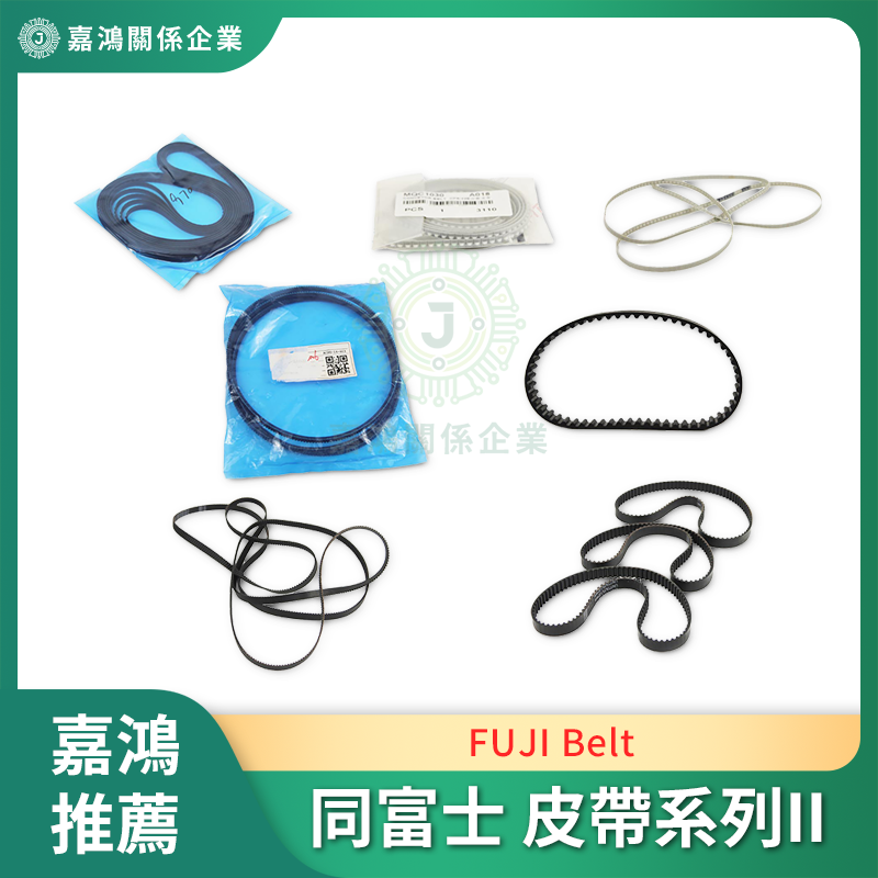 FUJI 貼片機 Cam Belt(凸輪傳動皮帶)為精密傳動件,影響機台節拍穩定與貼片放置精度。MQC1030(3110mm Conveyor Belt)與 H45713 / H4519L(Cam Belt)系列為 FUJI CP / XP 系列常見耗材,皮帶老化後出現打滑或節距偏差,須盡早更換以避免精度劣化。