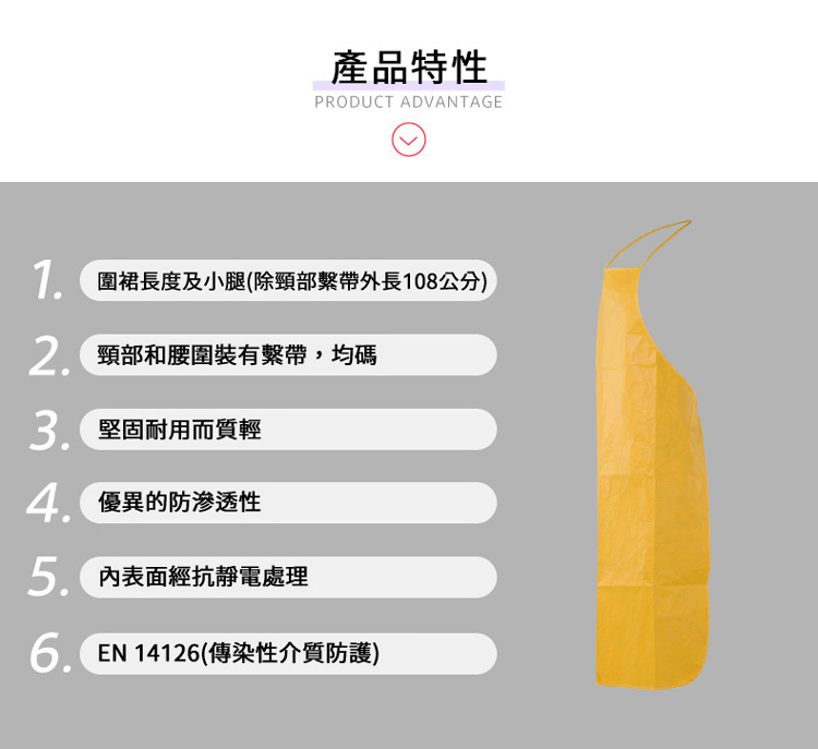 1.圍裙長度及小腿(除頸部繫帶外長108公分)
