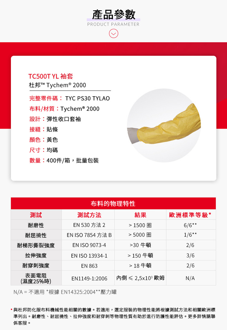 使用提醒:Tychem 防護衣物提供化學品防護,但防護效果因化學品種類與濃度不同而有差異,使用前請確認防護材料對特定化學品的滲透性能資料,確保符合作業風險等級需求。