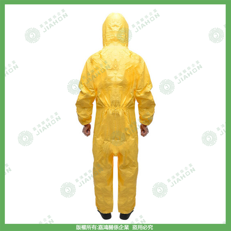 使用注意:請確認尺寸合身並完整密合拉鏈與袖口。請勿於高溫、明火、易燃易爆或富氧環境中使用;若防護服出現破損,應立即更換。