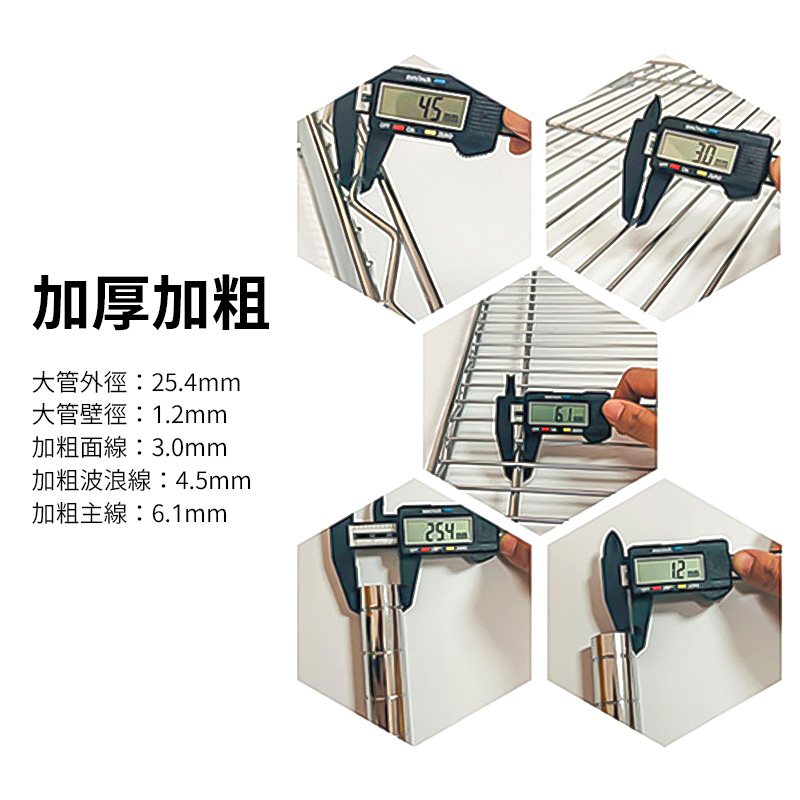 - ✅ 耐用鍍鉻材質: 採用高品質Q235碳鋼,抗腐蝕、耐磨損,使用壽命長,讓鍍鉻層架能夠應對長時間的重負荷使用。