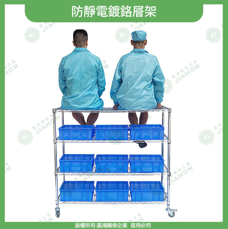 - 🚧 電子行業: 儲存電子元件、精密儀器等,防止靜電影響設備,確保工作環境的安全。鍍鉻層架能夠有效防止靜電對電子元件的干擾。