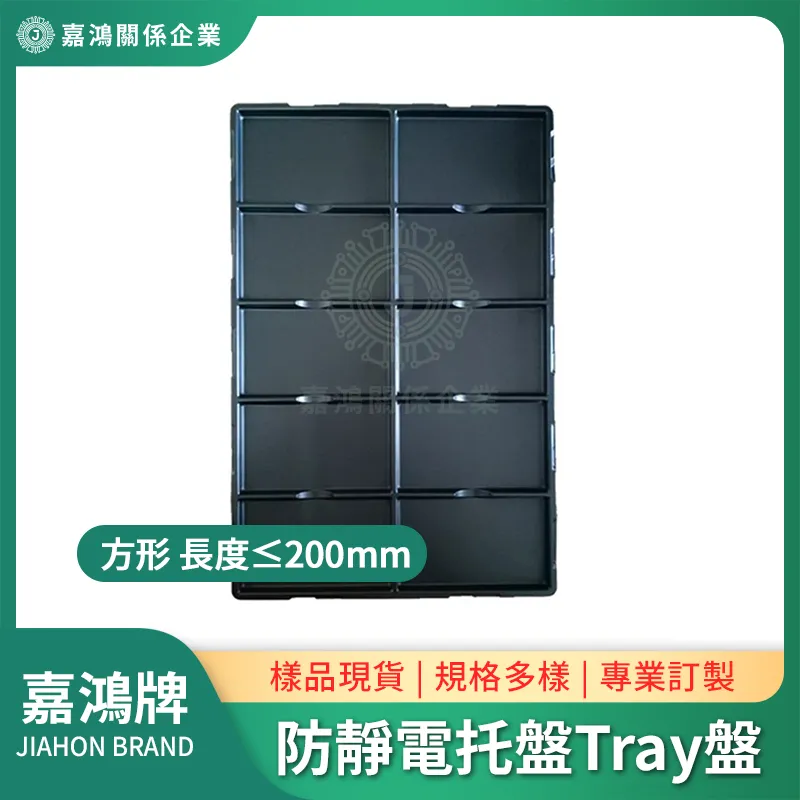 防靜電Tray盤方形 ≤200mm ESD 10⁶–10⁹Ω|PCBA模組、大型工業元件防靜電大格距承載