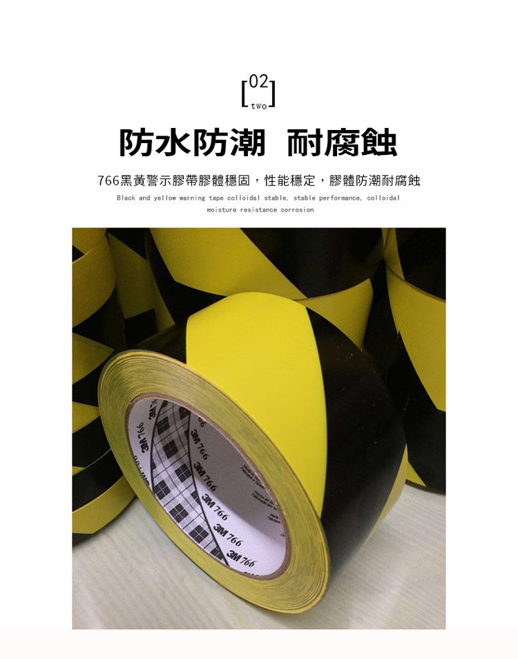 766黑黃警示膠帶膠體穩固,性能穩定,膠體防潮耐腐蝕