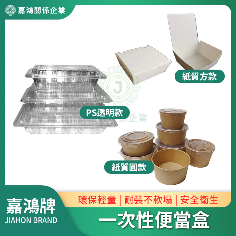 一次性便當盒系列提供多種尺寸與材質選擇,包含圓形紙質便當盒、長方形紙質餐盒與方型PS便當盒,適合餐飲外帶、團膳配送與外送平台使用。結構穩固、耐裝不易變形,滿足各類熟食、主餐與輕食包裝需求。