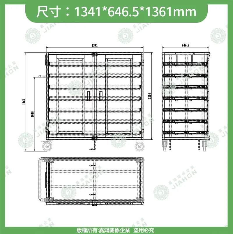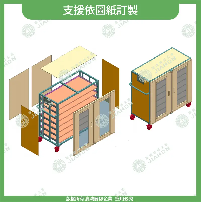 • 非標訂製全開放:層數 / 尺寸 / 隔間 / 腳輪規格全部可調,批量訂製支援免費打樣。