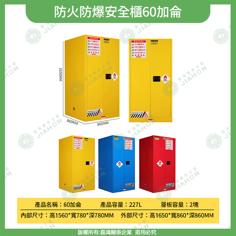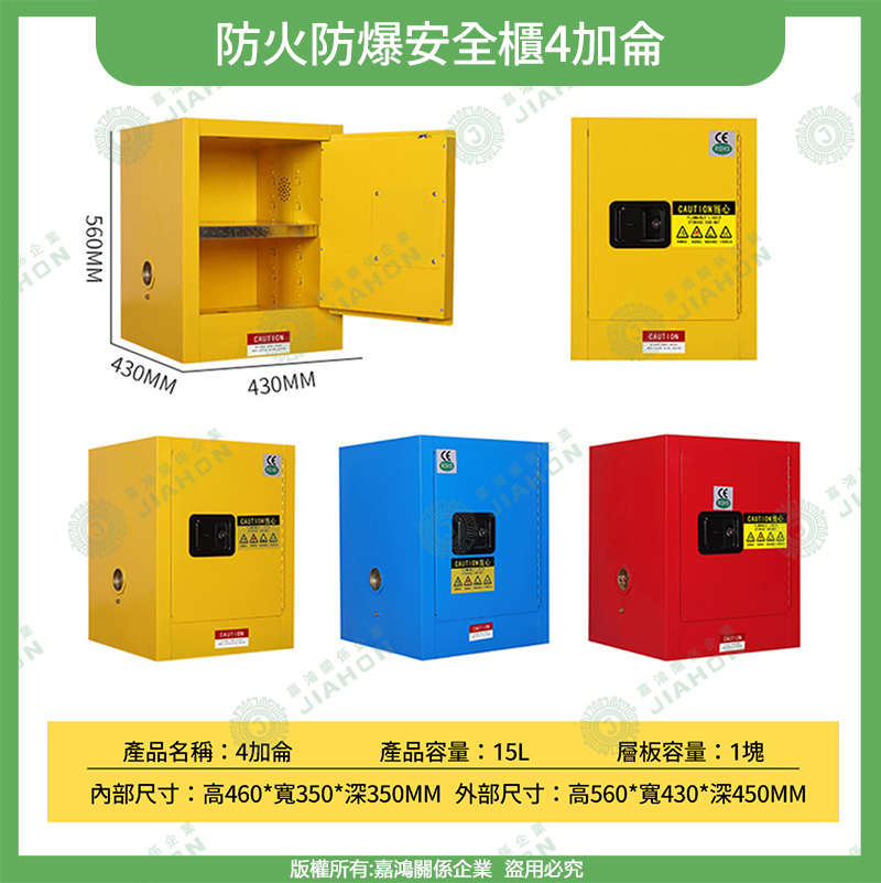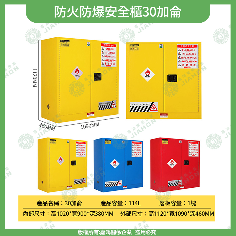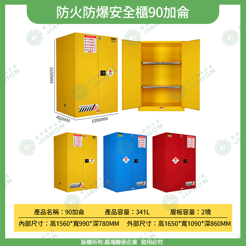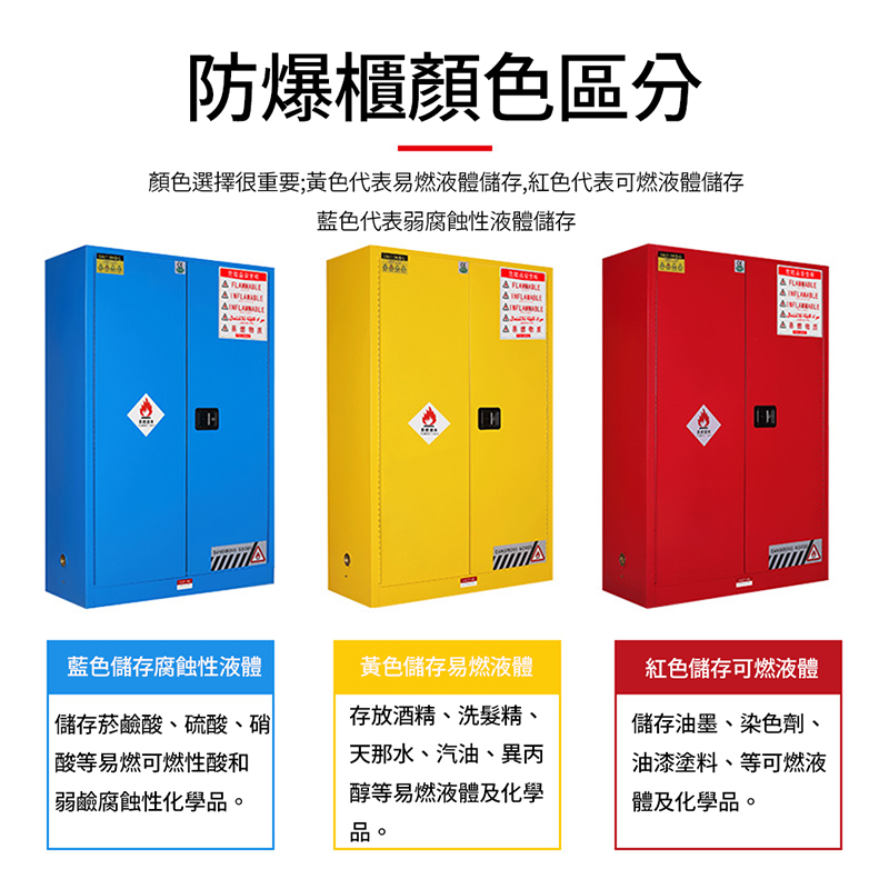 易燃液體防爆安全櫃|4~115 加侖 藍/黃/紅色 危化品儲存