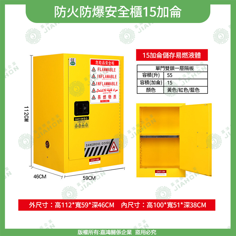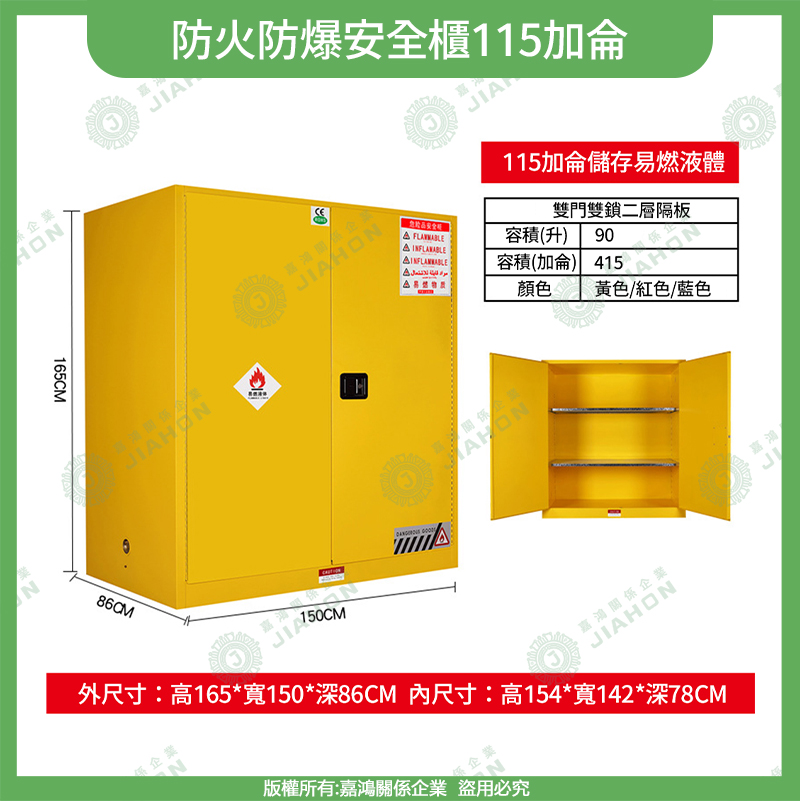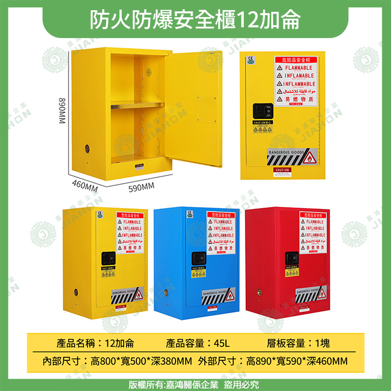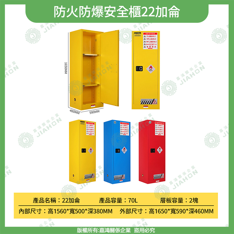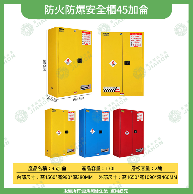 易燃液體防爆安全櫃|4~115 加侖 藍/黃/紅色 危化品儲存