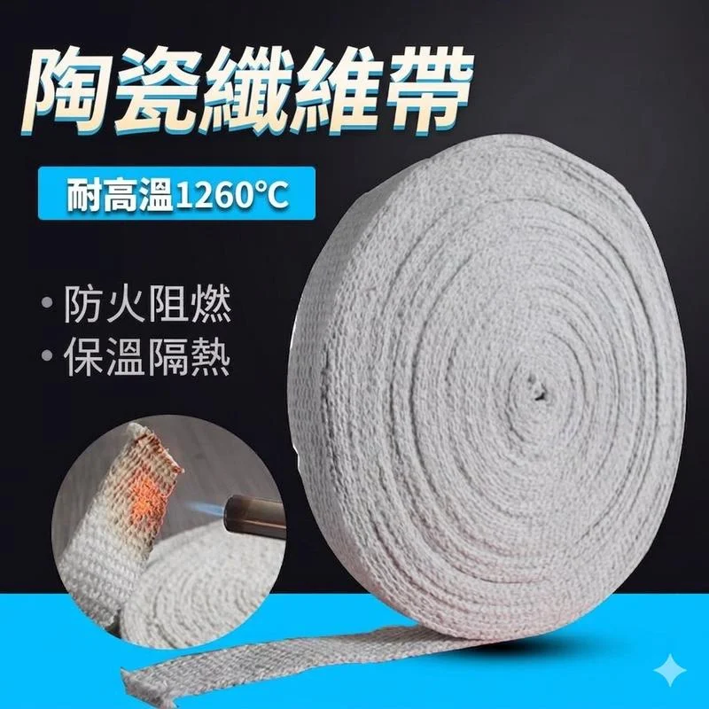 以高純度三氧化二鋁與二氧化矽纖維編織而成,耐溫達 1260°C,廣泛用於管線包覆、爐門密封、排氣系統隔熱,是石棉替代材料中兼具柔軟度與耐高溫性的實用選項。