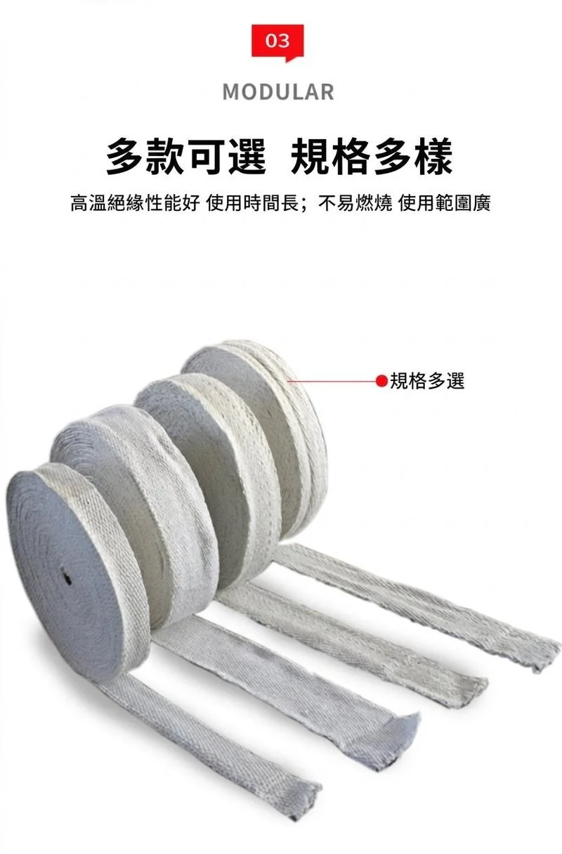 纏繞對象 細管/線束 → 窄幅(15-25mm);粗管/爐體 → 寬幅(50-100mm)