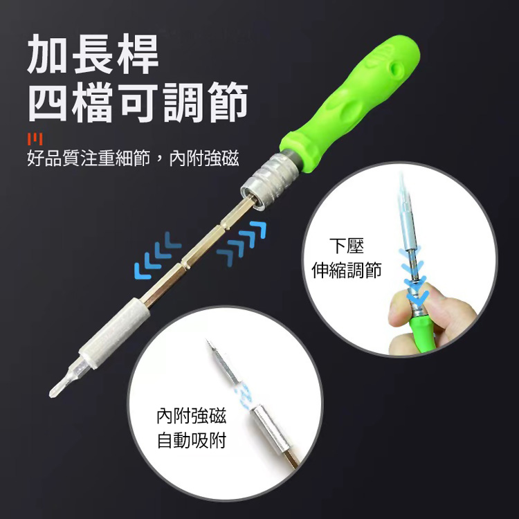 - 📌 輕巧便攜: 整套多功能螺絲起子體積小巧,方便攜帶與收納,適合外出修理或緊急維護使用。