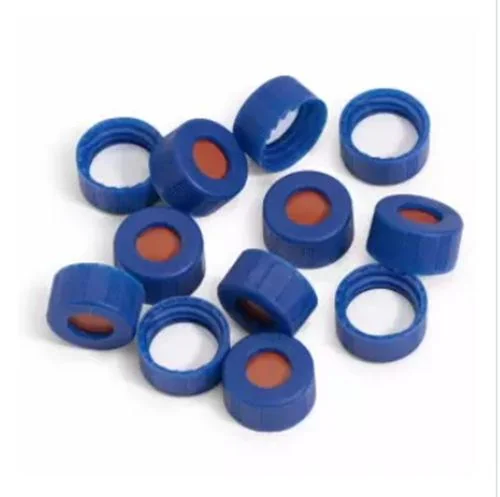 本款藍色螺旋蓋(9-425 規格)採用聚丙烯(PP)蓋體,內附預裝 PTFE/矽膠(紅色)複合隔墊,購入即可直接與 2mL 樣品瓶組合使用。藍色色碼方便實驗室分類管理,PTFE 面朝向樣品確保低吸附性。適用 Agilent HPLC 自動進樣器系列(1100/1200/1260/1290)。