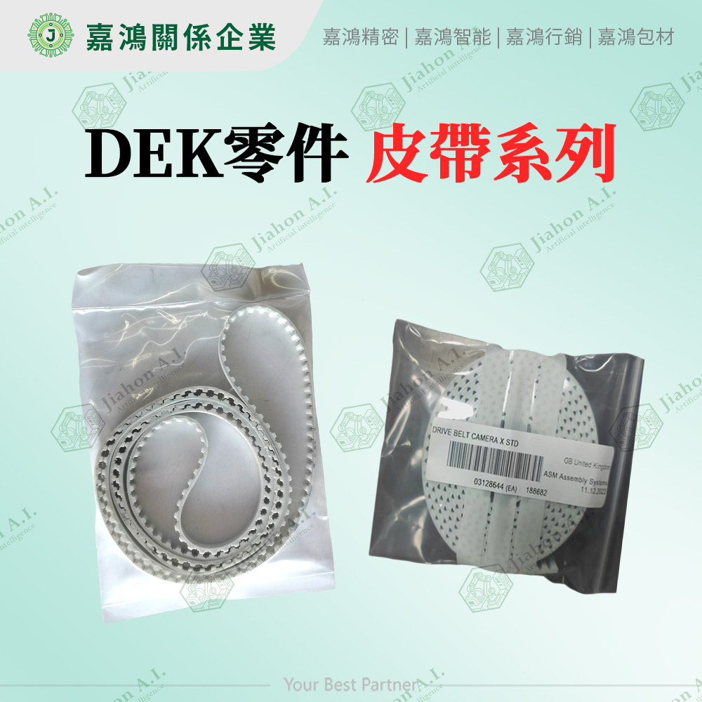 注意:本頁「驅動皮帶」(Drive Belt)為各軸動力傳動用,與 DEK 基板傳送皮帶(Transport Belt,料號 181706)為不同品項,請勿混訂。基板傳送皮帶請參閱線材拉繩系列頁面。