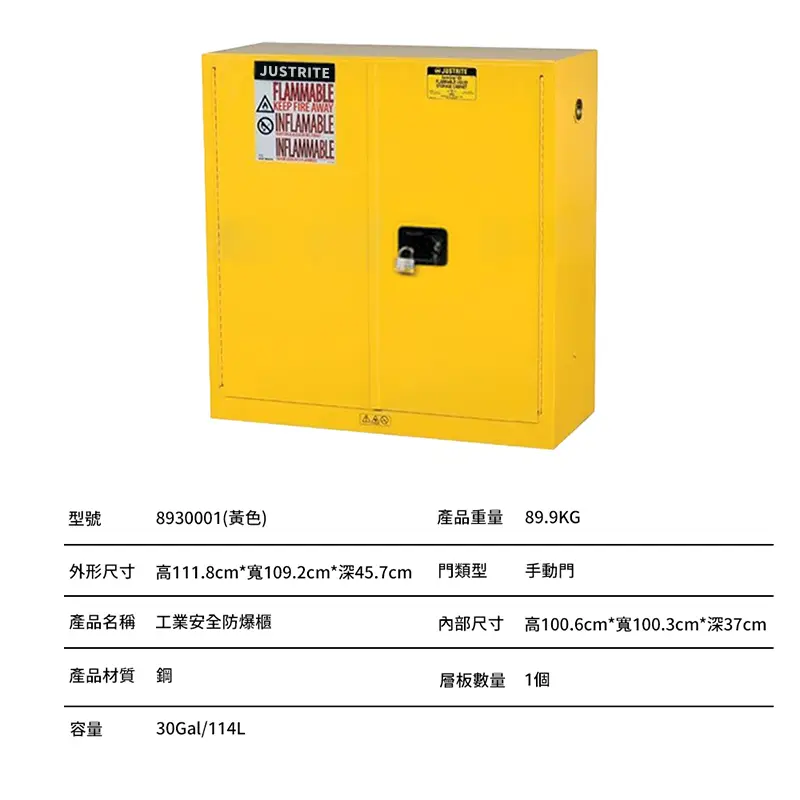 | 8930001 | 30 加侖 | 114 升 | 🟨 黃色(易燃液體) |