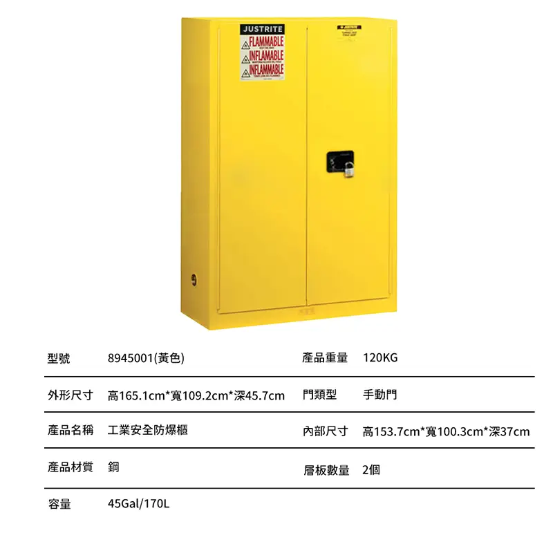 | 8945001 | 45 加侖 | 170 升 | 🟨 黃色(易燃液體) |