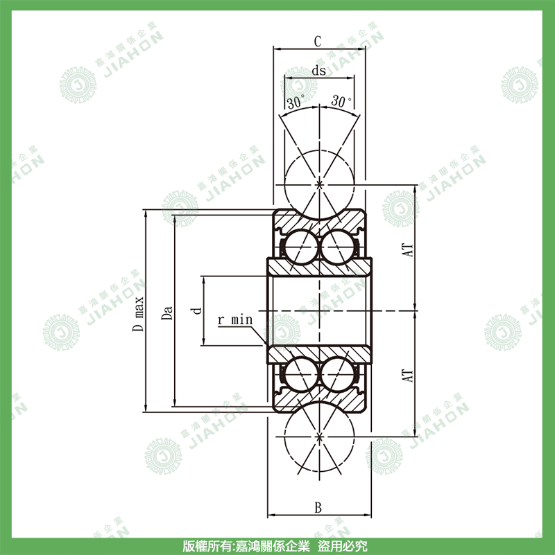 Crw = 動態額定負荷;Corw = 靜態額定負荷。如需完整尺寸表(含 AT、C、Da、Ds、r min、Fr、Fro),歡迎來信索取。