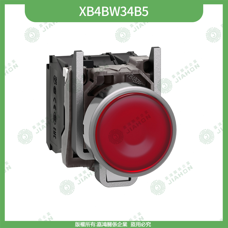 XB4BW35B5紅色照光發光按鈕1NO+1NC(SPDT)LED 24V AC/DC彈簧復歸,視覺狀態回饋